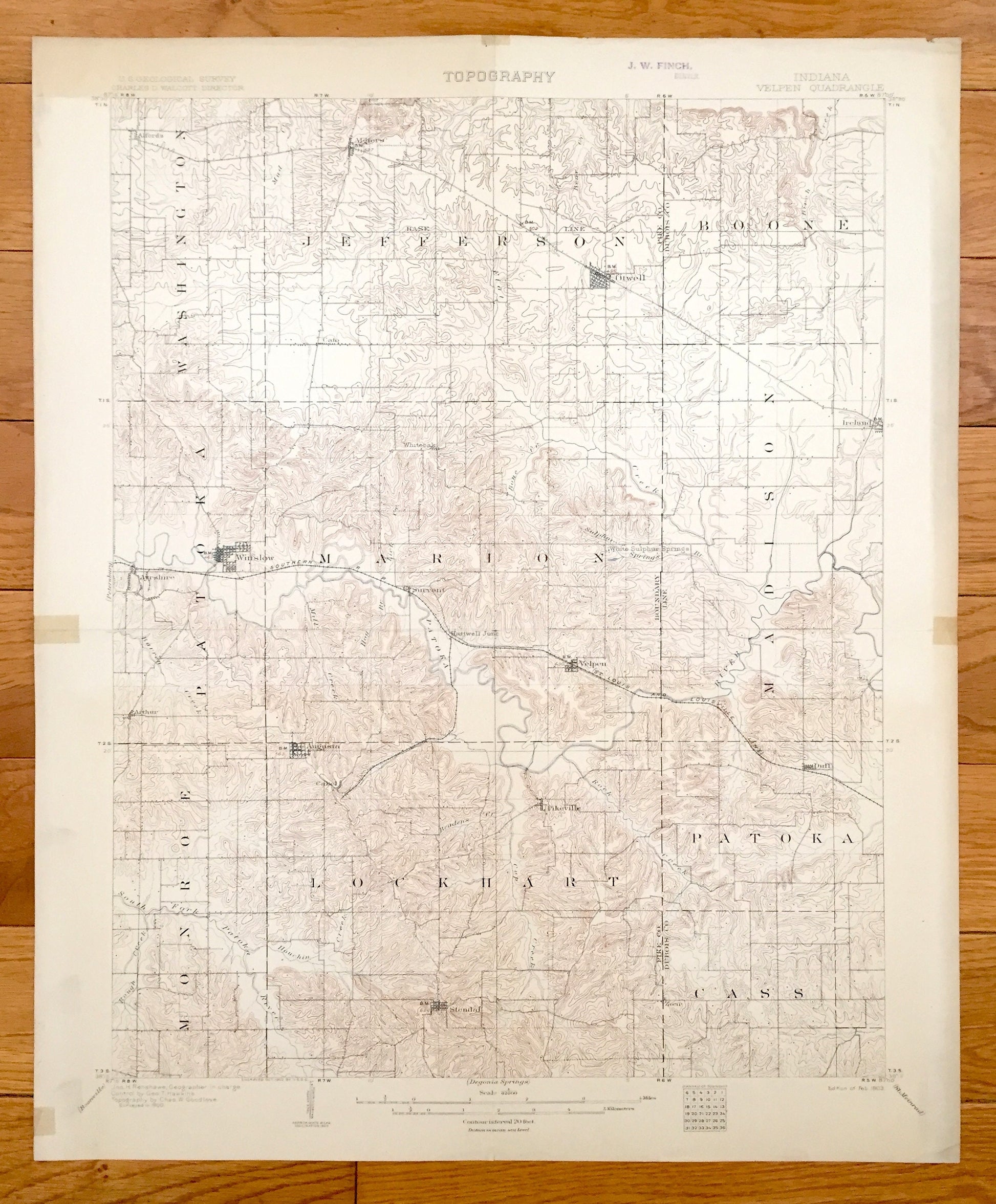 Beautiful, antique map of Velpen, Indiana and surrounding Dubois & Pike County area. This is an authentic 1903 print from the U.S. Geological Survey and NOT a computer reproduction.