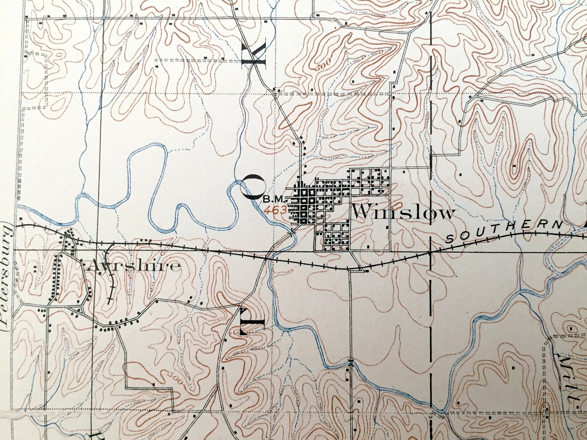 See what Indiana looked like more than 115 years ago. Lots of intricate details and geological contours. Map even has little squares for every house that existed at the time. The USGS cartographers were very thorough back then! On the back is a description of topographic symbols and map guide.