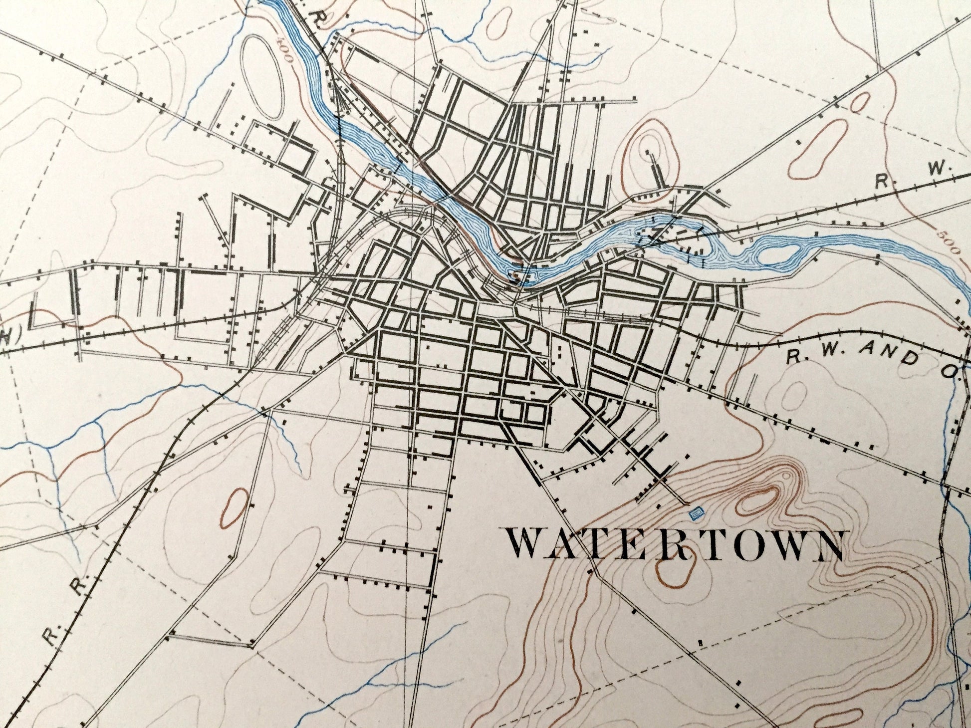 Beautiful, antique map of Watertown, New York and surrounding Jefferson County & Lewis County area. This is an authentic 1898 print from the U.S. Geological Survey and NOT a computer reproduction.
