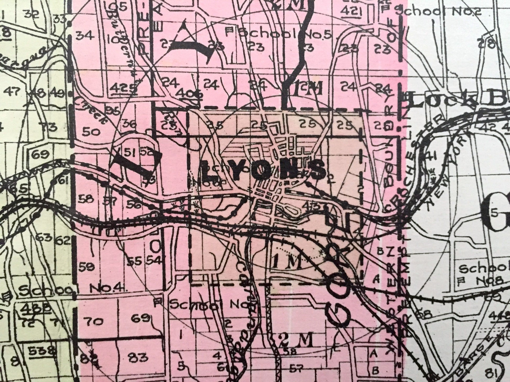 Beautiful, antique map of Wayne County, New York, including Lyons, Newark, Palmyra, Macedon, Sodus Point, Pultneyville, Huron, Clyde, Rose & Red Creek. This is an authentic map taken from the rare New Century Atlas published in 1912 and NOT a computer reproduction.